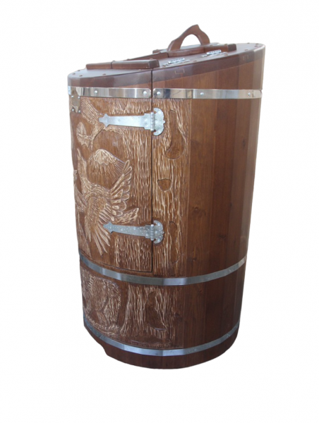 КЕДРОВАЯ БОЧКА С ХУДОЖЕСТВЕННЫМ ОФОРМЛЕНИЕМ